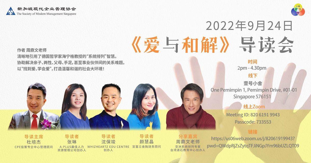 踏入九月,我们将在9月24日星期六下午 2pm 至 4.45pm 进行一场扣人心弦的导读会《爱与和解》。