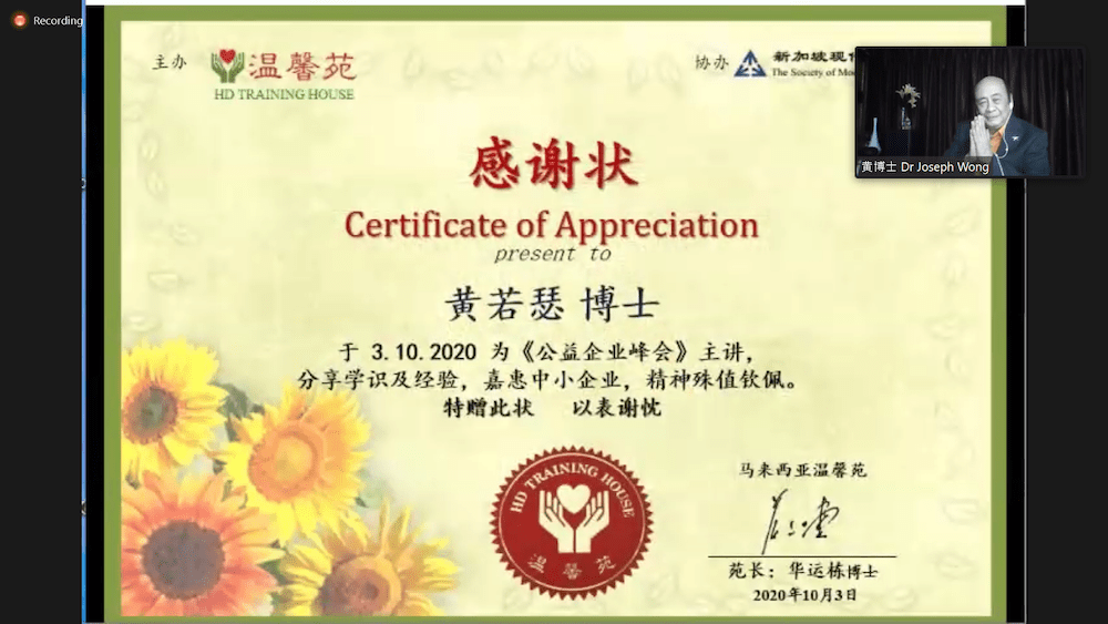 与姐妹会 - 槟城的温馨苑协办 三场线上公益企业峰会 现企将提供120个名额,以“先到先得”的方式,让会员登记参加。 如欲报名,请联络秘书处 : 6743 6838 / 8128 4246